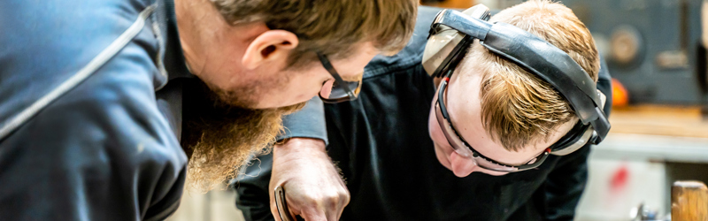Vi tror på kloge hænder og gode hoveder – vores tilgang kombinerer meningsfulde relationer og praksisfaglighed, så eleverne oplever succes og progression i et håndværksfagligt miljø.